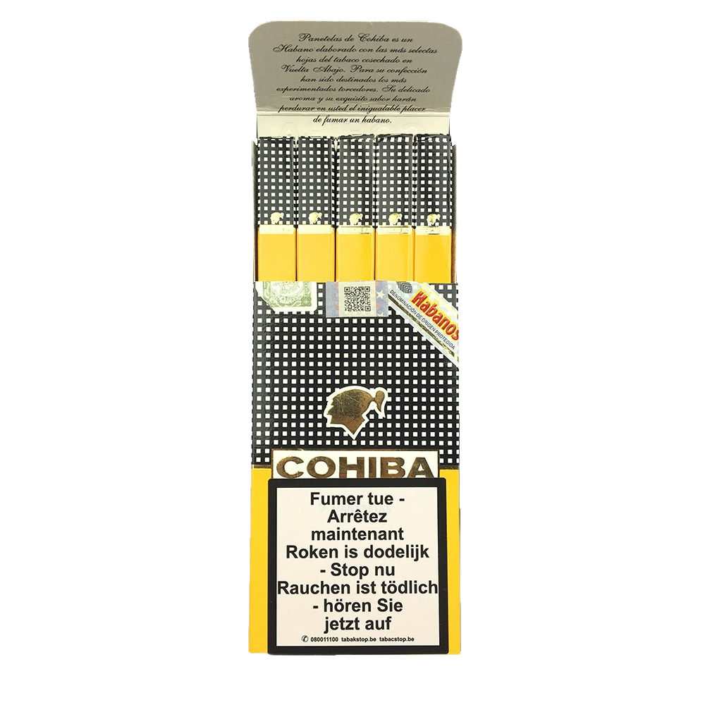 Cohiba is the most prestigious Habanos brand. Tobaccos from Vuelta Abajo, elaborate fermentation. Elegance, depth, incomparable character. Siglo lines to Behike series: highest craftsmanship with notes of cedar, leather, coffee, sweetness. The Panetelas from Cohiba offers a medium-full smoking experience with aromas of Cedar / Leather / Coffee / Sweetness. A premium cigar for the discerning connoisseur.